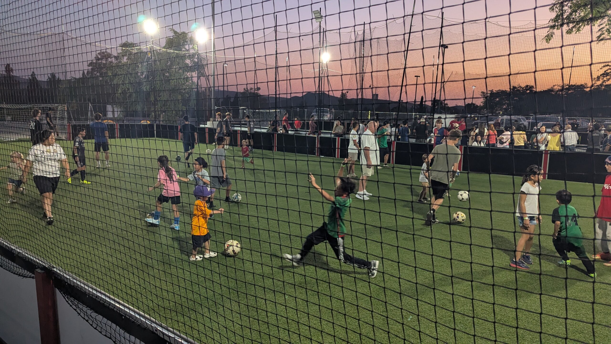 On August 1, we were ready to soft launch! We opened the nets for field testing to our Rebels players, who offered the feedback we needed to tweak, remove, replace, and resolve whatever could be improved. Lighting was a big factor. After our initial trial proved too dim, we upgraded to the bigger, brighter stadium lights you see today. We are proud that they illuminate our players who love to play footie after sunset. Families have actually thanked us for them!